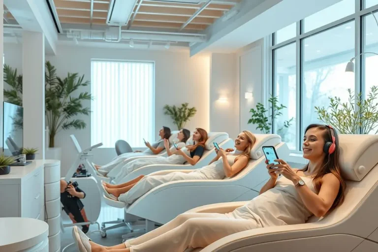 Clínica estética moderna com clientes satisfeitos